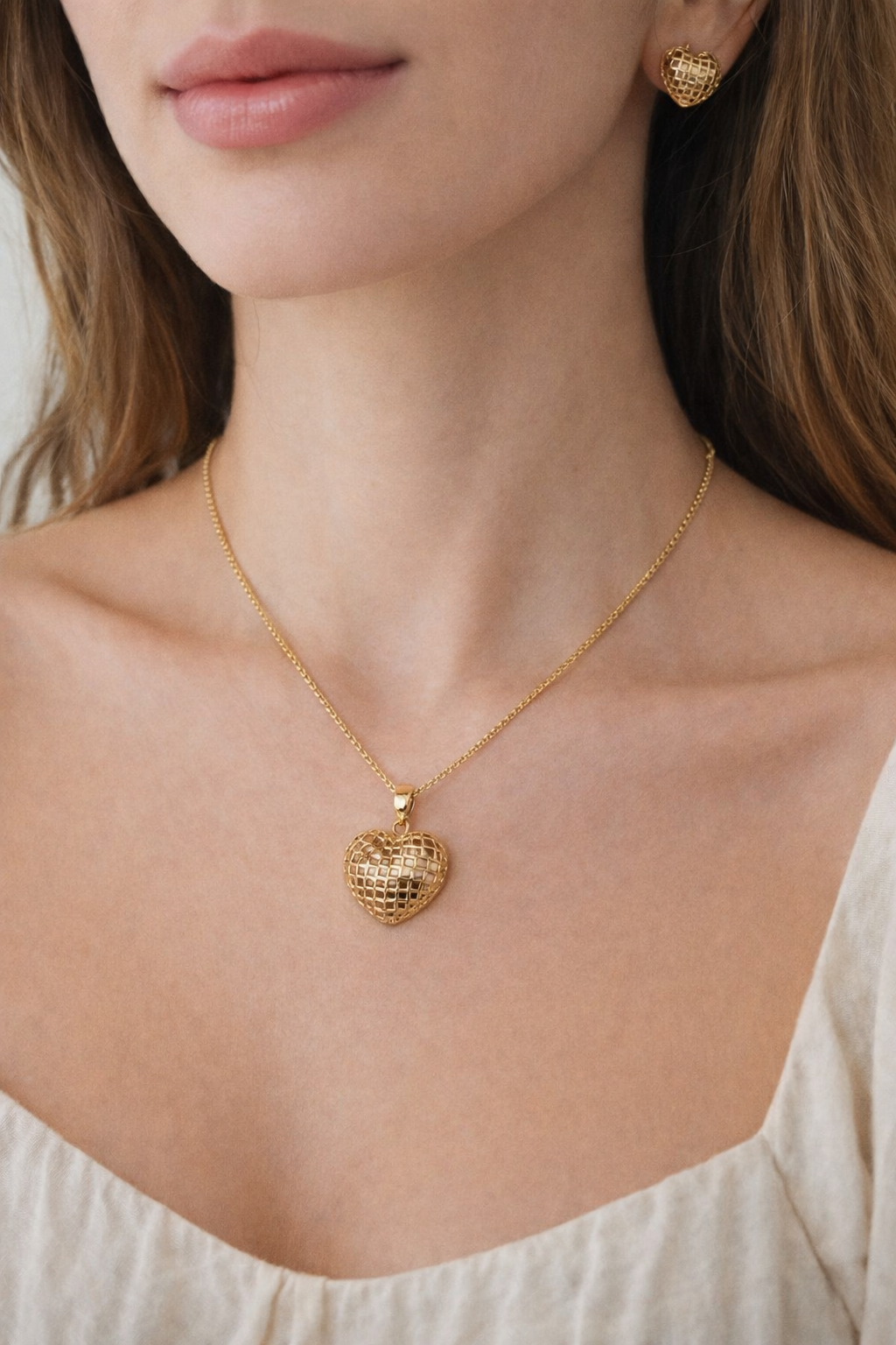 Delicado, moderno e cheio de significado. O conjunto de colar e brincos coração trançado com design quadrado traz um brilho sofisticado e um estilo único que valoriza qualquer look.