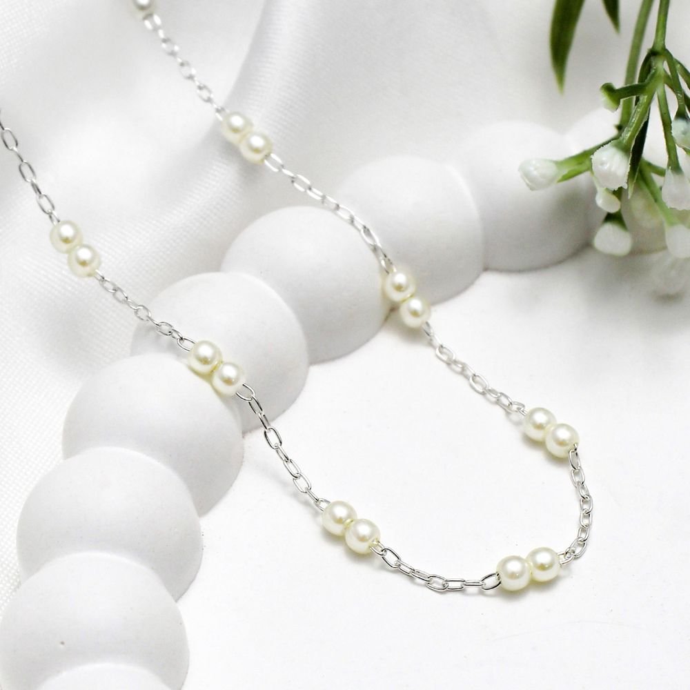 A Gargantilha Elo Cadeado com Pérolas Intercaladas em Prata 925 é a peça perfeita para quem busca um visual moderno e delicado ao mesmo tempo.